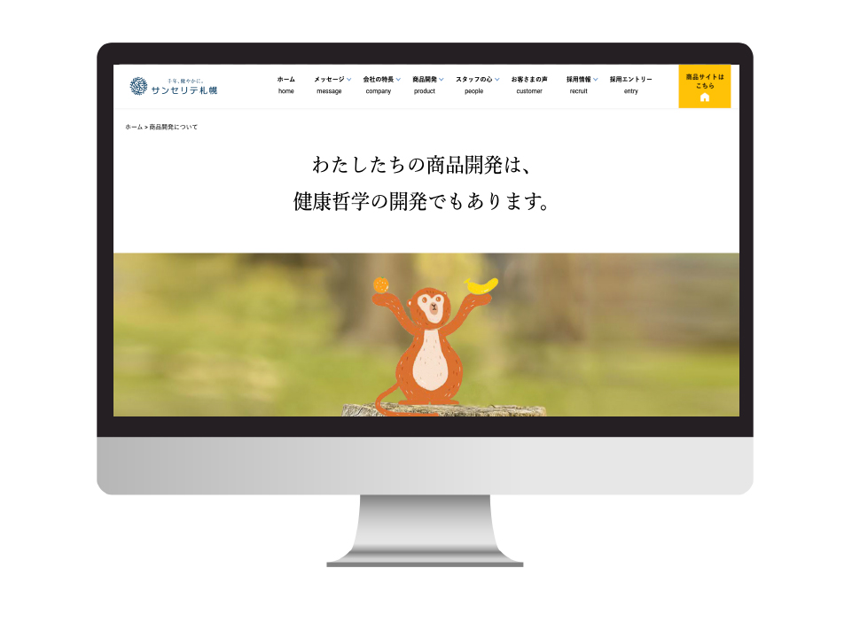 健康サプリメントと美容スキンケア商品を開発するサンセリテ札幌には、60品目以上の商品を販売するオンラインショップがあります。しかし、オンラインショップには、会社の成り立ちや商品開発に対する考え、どんな人たちが働いているかなどの記載がなかった。長いお付き合いのあるお客様にも、新規のお客様にも、これから仲間になる求職者にとっても、会社の考えやを伝える場が必要だと考え、新たにコーポレートサイトを立ち上げました。